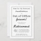 Pour un sendoff mémorable, cette drôle d'invitation à la mémo de la fête de la retraite apportera un sourire. Il dispose d'un format de mémo rétro de bureau avec du texte noir sur un arrière - plan blanc en utilisant une police de style vieille machine à écrire qui rappelle les jours passés. Le texte annonce que le retraité sera absent pour toujours ! Le dos de la carte a un modèle photo pour ajouter une photo préférée de l'invité d'honneur. Personnalisez cette invitation avec vos détails et laissez la célébration commencer!