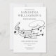 Choisissez cette invitation moderne et élégante pour récital de piano avec une portée musicale artistique élégante sur un fond blanc minimaliste. Le verso comporte un espace pour ajouter un programme de récital complet, un code QR pour les détails du programme, ou une réponse (veuillez supprimer si vous n'avez pas besoin d'un code QR) et un espace pour plus d'informations.