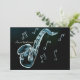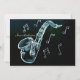 dessin libre en bleu et noir en blanc d'un saxophone avec notes de musique. instrument de musique en noir et blues.