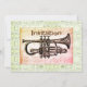 Art vintage avec peinture d'une trompette avec sculpture florale.