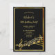 Une carte d'invitation branchée, moderne, 50ème anniversaire ou n'importe quel âge pour hommes et femmes. Un arrière - plan noir classique, avec cadre faux or et notes de musique, lettres dorées. Personnalisez et ajoutez les informations de votre parti. Retour : Noir couleur fausse note de musique or.