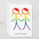 Ce faire-part de mariage présente un design magnifique et chaleureux pour annoncer officiellement votre journée spéciale. Le graphique représente deux femmes, sous la forme d'élégantes figurines en bâton, se tenant la main. Les figures sont colorées dans un bel arc-en-ciel, symbolisant l'amour et la diversité. Cette invitation est une merveilleuse façon d'apporter une touche cohérente et significative à votre papeterie tout en offrant aux invités un premier regard élégant sur votre célébration mariage.