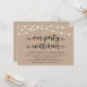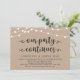 Belles guirlandes rustiques modernes de ferme, police de caractères noire sur fond kraft marron, annonce d'évasion amoureuse, carte d'invitation (Notre fête continue). C'est parfait pour votre réception de mariage et votre fête de célébration après le mariage. Ajoutez vos détails dans la même police / lettrage.