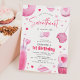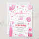Notre petite Invitation de 1er Anniversaire. Design est doté d'une jolie bordure de douceurs roses, de coeurs et d'un modèle de fête mignon, facile à customiser avec vos propres détails.