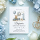 Célébrez le premier anniversaire de votre petit avec ce design "beary first birthday" (premier anniversaire ours) avec un ours en peluche bleu et une montgolfière. Un ours en peluche à l'aquarelle douce chevauchant une voiture jouet est assis sous une montgolfière rayée, des nuages doux, des blocs de bois et un grand chiffre 1—parfait pour une invitation d'anniversaire pour un garçon dans un style de nurserie moderne et neutre. La palette de bleu pastel doux et de gris garde l'apparence intemporelle pour les photos et les souvenirs.