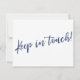 Gardez vos amis et votre famille à jour avec votre nouvelle adresse en utilisant ces cartes faire-part simples et élégantes. Vous pouvez les insérer dans vos envois sur le thème du mariage ou les partager en personne, selon vos besoins. Que vous soyez marié(e) ou que vous souhaitiez simplement un design unique pour que votre tribu sache comment vous trouver, cette carte est suffisamment polyvalente pour n'importe qui. Il présente de jolis graphiques typographiques qui lisent "We've Moved" sur le devant et "Keep in touch!" sur le dos, en utilisant une police de script moderne, décontractée, manuscrite. Utilisez les champs modèle pour ajouter tous vos propres détails afin de personnaliser ce design pour votre propre usage. Si vous souhaitez modifier la jolie police sans-serif simple que j'ai utilisée pour le texte modifiable, ou si vous souhaitez déplacer des lignes ailleurs, cliquez sur le lien pour customiser la carte plus loin. Le type bleu marine a été placé sur un arrière - plan blanc modifiable ; vous pouvez changer l'arrière - plan à n'importe quelle couleur que vous souhaitez. // 90 //