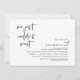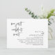 Carte d'invitation de mariage intime au thème de script noir moderne (Nous n'avons pas pu attendre). Elle est parfaite pour votre réception de mariage intime / fête de célébration après le mariage. Ajoutez vos détails dans la même police / lettrage noir.
