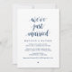 Belle écriture moderne et décontractée, en police de caractères Navy Blue Script, Annonce de mariage en fugue, carte d'invitation (Nous venons de nous marier). C'est parfait pour votre réception de mariage et votre fête de célébration post-mariage. Ajoutez vos détails dans la police de caractères / lettrage correspondante.
