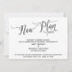 La distinction de cette suite est due à la police de caractères élaborée et tourbillonnante utilisée pour les phrases d'accentuation. Dans le cas où vous auriez besoin d'informer vos invités que votre mariage a été reporté, cette carte offre une option élégante. Dans ce modèle, la police de calligraphie a été utilisée pour créer un graphique représentant les mots "Nouveau plan". Utilisez les champs du modèle pour ajouter vos informations personnelles et personnaliser ce design. L'arrière-plan peut être modifié pour correspondre à la couleur de votre choix. N'hésitez pas à nous contacter pour toute demande spéciale ou pour une aide à la personnalisation. // 98 //