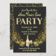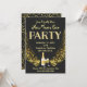 Nouvel An Invitation De Soirée. J'ai conçu cette carte avec un arrière - plan presque complètement noir. La fête s'ajoute avec un élément de fausse parties scintillant, suivi de la parties scintillant dorée, du champagne et des lunettes. Le dos de la carte a aussi une parties scintillant dorée. Élégant, raffiné et minimal. Faisons la fête ! Bonne année. Personnalisable . © Rosemarie Guieb