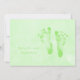 C'est un genre simple et mignon, neutre, invitation de baby shower pour un bébé ou fille avec un ensemble de petites empreintes de pas douces de bébé sur l'avant sur un fond grunge vert en pastel doux.