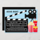 Cette invitation à la fête d'anniversaire de la fête du cinéma comporte une caméra vidéo et des collations et des champs de texte personnalisables pour vos informations de fête.