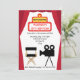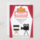 Cette invitation à la fête d'anniversaire de la soirée de cinéma comporte une caméra vidéo et un fauteuil de réalisateur et des champs de texte personnalisables pour vos informations de fête.