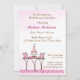 Une invitation élégante pour un déjeuner nuptiale de douche ou de demoiselle d'honneur avec la table et les chaises florales, le gâteau de mariage avec le haut de forme de jeunes mariés et la frontière florale rose.