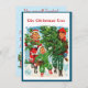 Cette invitation de Noël très colorée et très lumineuse rappelle à un de leurs jeunes que nous voyons des enfants heureux et joyeux ramener l'arbre de Noël à la maison après l'avoir coupé dans la forêt.