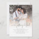 Elégant Obtention Hitched QR Code Photo Overlay Faire-part de mariage. Ajoutez votre code QR à votre site Web mariage au verso afin que vos invités puissent RSVP et voir tous les détails en ligne sans avoir besoin de pièces jointes séparées. Un script moderne pour We’re get hitched et personnaliser facilement le reste du texte et remplacer l’exemple de photo par votre propre préféré.