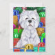 Ce West Highland White Terrier ne peut pas attendre plus longtemps pour déchirer tous les cadeaux de Noël. Ses yeux mendiants disent tout - Pouvons-nous les ouvrir MAINTENANT? ! Une adorable scène de Vacances qui ne manquera pas d'être votre coup de coeur