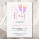 Ces Invitations de Douche pour Bébé de Fille sont décorées avec une typographie rose élégante et les pieds de bébé d'aquarelle mignonne dans les couleurs pastel arc-en-ciel. Facilement personnalisable avec vos détails. Parce que nous créons notre oeuvre, vous ne trouverez pas cette image exacte d'autres designers. Aquarelle originale © Michele Davies.