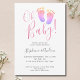 Ces Invitations de Douche pour Enfants de Couples Girl's sont décorées avec une typographie rose élégante et les pieds de bébé d'aquarelle mignonne dans les couleurs pastel arc-en-ciel. Facilement personnalisable avec vos détails. Parce que nous créons notre oeuvre, vous ne trouverez pas cette image exacte d'autres designers. Aquarelle originale © Michele Davies.