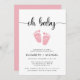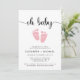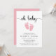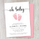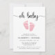 Jolie invitation à la douche fille du couple simple avec "oh bébé" dans un script élégant avec des swashes et une aquarelle rose pastel de pieds bébé. En dessous, vous pouvez facilement personnaliser les détails de la douche.