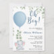 "Oh Boy" Elephant Eucalyptus Blue Balloon Baby Shower Invitation | Cute Greenery Safari Boy Invite
