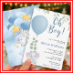 oh boy elephant eucalyptus, blue balloon baby invite, cute greenery safari boy, elephant baby shower invite, eucalyptus baby boy shower, personalized elephant invite, blue elephant baby shower, greenery balloon baby, oh boy safari invite, baby elephant eucalyptus