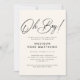 Oh Boy Modern Script Dusty Blue Baby Shower Invitation - featuring pretty script and modern typography for a minimalistic feel. Shown in ivory and black. Several colors are available, you can change the text color and background for your color palette in the design tool.