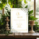 Cadre décoratif avec une bordure géométrique dorée, accentué par un feuillage vert luxuriant. La verdure orne gracieusement les coins supérieur droit et inférieur gauche, ajoutant une touche d'élégance naturelle.