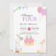 Faites la planification d'une fête avec cette invitation personnalisable d'anniversaire! Décoré sur le thème du canard, joli et ludique, avec un canard de fête portant un casquette en cadeau, un gâteau d'anniversaire festif, des confettis et des ballons épars. Le texte "Avery is FOUR" peut être facilement customisé pour correspondre à n'importe quel nom et âge. Personnalisez chaque détail, y compris la date, l'heure, l'adresse du lieu et le contact RSVP. L'agencement soigné et propre assure la présentation de tous les détails importants de l'événement.