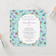 Une invitation de mariage chic et élégante. Un motif aquarelle multicolore avec divers oiseaux sauvages et exotiques. Certains ont les ailes déployées, battant des ailes, d'autres restent immobiles. Les couleurs comprennent le bleu bébé, le rose pastel, le violet et une chaude couleur orange doré sur leur poitrine. Les couleurs se mélangent et se fondent harmonieusement. Un design artistique joli et unique. Un cadre fantaisie avec une bordure dégradé or au centre avec un centre blanc pour que vous puissiez personnaliser avec vos détails de mariage. Le fond est d'un vert menthe pâle.