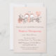 Une invitation assez nuptiale de douche avec deux inséparables sur des branches d'arbre avec des coeurs et fleurs sur l'arrière - plan de pêche.