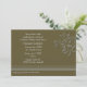 Un arrière - plan vert olive abrite une branche d'olivier grise et un groupe à trois bandes le long de ce design sophistiqué. Convient aux diplômes, aux départs à la retraite, aux fêtes d'anniversaire masculines et plus. br/>L'invitation est facile à customiser avec votre libellé, police, couleur de police et choix de six types de papier.