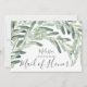 L'invitation à la proposition de servante d'honneur botanique moderne comprend un arrangement de goutte d'olives et de feuilles vertes. Impressionnez votre bonne d'honneur avec cette invitation botanique aérée.