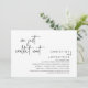 Annoncez votre bonheur toujours après dans le style avec notre carte d'invitation de mariage elopement design script moderne. Nous ne pouvions pas attendre, notre carte Happily Ever After Party Invitation est idéale pour les couples qui ont décidé d'fuir et veulent organiser une fête pour célébrer leur union. Avec son design sophistiqué et ludique, cette invitation vous donnera le ton pour un événement inoubliable. La carte d'invitation présente un design minimaliste avec un schéma noir et blanc, ajoutant une touche d'élégance intemporelle à votre célébration.