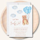 Cette mignonne invitation au baby shower est décorée d'un ours en peluche aquarelle et de ballons bleus. Il dit "We Can Bearly Wait" dans une typographie stylée brune. Parfait pour la douche d'un bébé garçon. Facile à personnaliser. Aquarelle originale © Michele Davies.