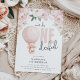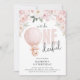 Cute Onderful 1st Birthday Invitation. Le design comprend un adorable ours en peluche aquarelle, portant un arc rose flottant sur terre dans une montgolfière rose aquarelle encadrée de jolis floraux roses et de la verdure et un élégant modèle de fête d'anniversaire qui est facile à customiser avec vos propres détails de l'événement.