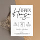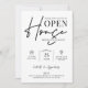 Créez des invitations d'entreprise modernes pour votre événement à domicile ou votre fête du réchauffement de la maison avec cette invitation minimaliste à l'événement de vente de propriété. Cette simple invitation à l'agent immobilier en noir et blanc comprend un agencement élégant, des polices de caractères modernes et un espace pour vos détails d'événement et d'affaires, une façon très facile et classe de promouvoir votre prochain événement Open House!