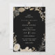 Feuillage floral et botanique doré opulent, faire-part de mariage aux couleurs arrière - plans noires moody et coordonnant le texte beige. Elégant thème monochromatique en faux or et beige.