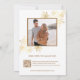 Cette élégante faire-part de mariage de luxe présente des fleurs en or 3 dimensions et des fleurs en ligne dorée sur un arrière - plan blanc. Avec votre photo et un code qr scannable pour votre site mariage à l'arrière. Noms de mariée et de mariée dans un élégant script manuscrit.