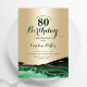 Émeraude vert et or agate 80e anniversaire invitation de fête. Design élégant et moderne avec aquarelle agate marbre arrière - plan, fausse parties scintillant or et typographie script de police. Carte invitation branchée parfaite pour une célébration anniversaire féminine élégante. Invitations Zazzle imprimées ou téléchargement instantané modèle imprimable numérique.