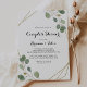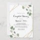 Cette invitation à la douche en couples de calligraphie moderne géométrique or est parfaite pour un wedding shower rustique. Le design présente des branches d'eucalyptus vert et botanique dessinées à la main et des feuilles ornant un cadre élégant.