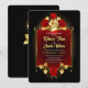 Invitation de mariage florale romantique et moderne avec le noir, l'or et le rouge - des couleurs classiques qui ne se démodent jamais.