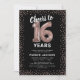 Élégante invitation à la fête du 16e anniversaire avec un arrière - plan noir élégant qui peut être changé à n'importe quelle couleur, parties scintillant brillante or rose, seize ballons d'hélium or rose, et un modèle de texte de célébration du 16e anniversaire moderne qui est facile à personnaliser.