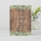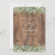 Faire-part de Fête de Mariage en Bois avec Eucalyptus et Fleurs Blanches de style Rustique Or | Carte d'Invitation pour Fête de Naissance Botanique Rustique