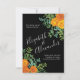 Belle Orange & Black Gothique pivoine & rose invitation à mariage floral avec une abondante verdure. Parfait pour un thème fleuri ou un mariage blanc traditionnel au printemps ou en été. Customisez la couleur et le texte pour que ce mariage vous invite !