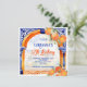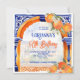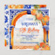Orange agrumes azulejo majolica talavera tuiles arche bleu orange méditerranéen carreaux anniversaire modèle invitation instantanée télécharger, pour printemps été vibrante couleurs fonctions thématiques