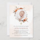Ces belles invitations Baptême ou Christening présentent un style boho tendance et un élégant texte bordeaux et noir. Une couronne bohème rustique de fleurs orange, pêche, rougies et taupes et des feuilles botaniques neutres encadre la photo de votre bébé, avec des éclaboussures d'aquarelle subtiles sur un arrière - plan blanc. Une fausse croix d'or est présentée au centre. Bien qu'il soit particulièrement bon pour un baptême d'automne ou d'automne, ce design charmant sera parfait à tout moment de l'année.