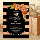 Invitation de fête de 40e anniversaire rayée orange florale.