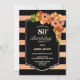 Invitation Orange Floral Noir rayé 80e fête d'anniversaire