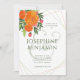 Invitations de mariage modernes avec des pavots orange design. Un ensemble botanique de fleurs d'aquarelle orange avec rose et verdure orne le coin supérieur. Des lignes fines forment une bordure géométrique pastel autour du texte. Les polices imprimées sont vert foncé, avec un grand ampersand (et signe) en sauge pâle, derrière les prénoms du couple. Le format de texte simple est facile à personnaliser et commence par "Rejoignez-nous au mariage de". Montré sur le livre blanc, mais des mises à niveau sont proposées. Ce design est aussi très agréable sur le papier kraft. Le design floral est parfait pour les couples célébrant un mariage à la maison dans le jardin.